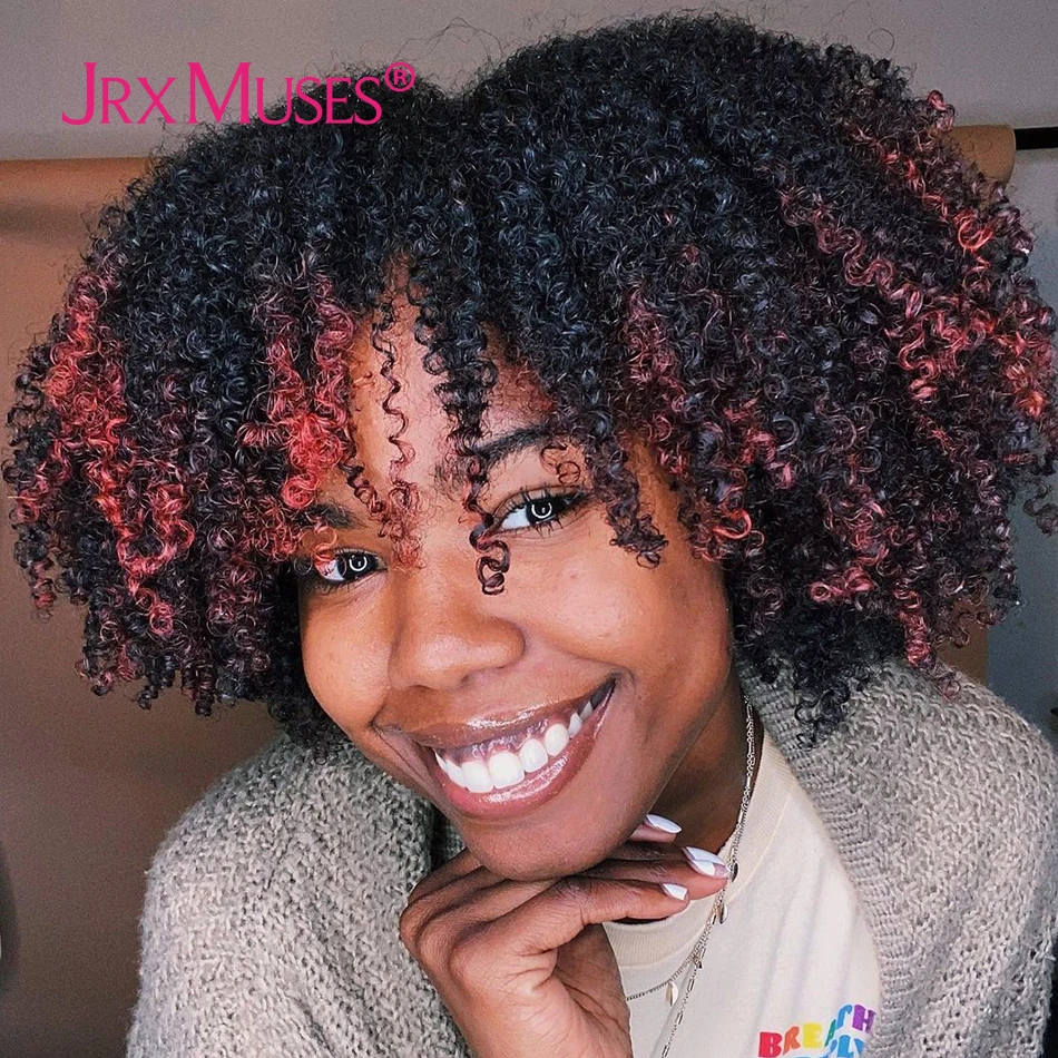 Ombre Red Highlights Kinky Curly Hair With Bangs Bob Cut Human Hair Fringe 250 Density Afro Wig For Black Women Full Machine Wigs Aliexpress